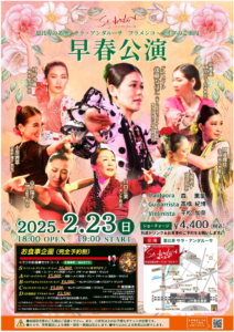 2025年2月23日(日) 早春公演に青木愛子スペイン舞踊団が出演 @サラ・アンダルーサ Open 18:00 Stage 19:00~ Bailaora 村中沙織、新善美、小原茜草、川口正美、手塚道子、間邊理佳、山下陽子 Guest Bailaora 後藤なほこ Guitarrista 高橋紀博 Cantaora 森薫里 Violinista 平松加奈