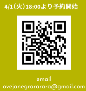 お問合せ&ご予約 ovejanegrararara@gmail.com